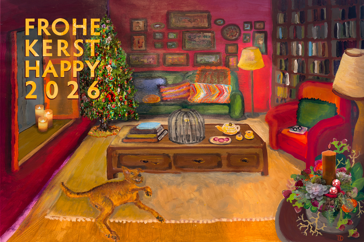 This year our christmas card was inspired by an interior painting of a red room that I made last year during the summer. I used good old photoshop to give the room a christmas makeover. Even the old twikga christmas tree came down from the attic . I designed that tree for my very first christmas card in 2009, when I was working on my first Phanhabs book, Lush Bush.