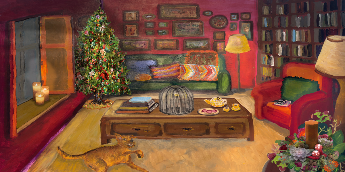This year our christmas card was inspired by an interior painting of a red room that I made last year during the summer. I used good old photoshop...